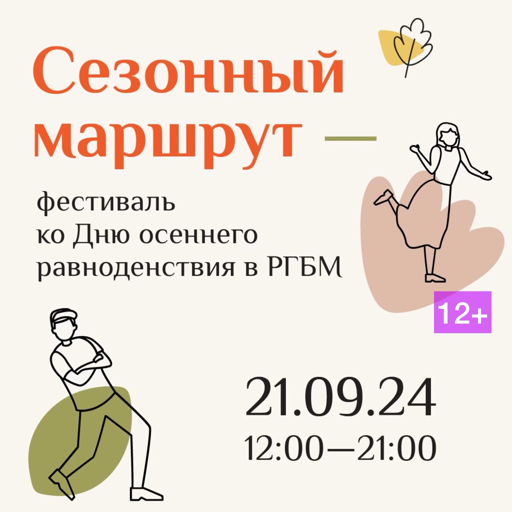 21 сентября с 12:00 до 21:00 Российская государственная библиотека для молодёжи (РГБМ) приглашает всех желающих на яркий однодневный фестиваль «СЕЗОННЫЙ МАРШРУТ», приуроченный ко Дню осеннего равноденствия. Событие станет символическим переходом в астрономическую осень и позволит не только весело провести время, но и спланировать будущее, определить цели на новый учебный сезон и зарядиться интеллектуальными идеями в компании единомышленников.